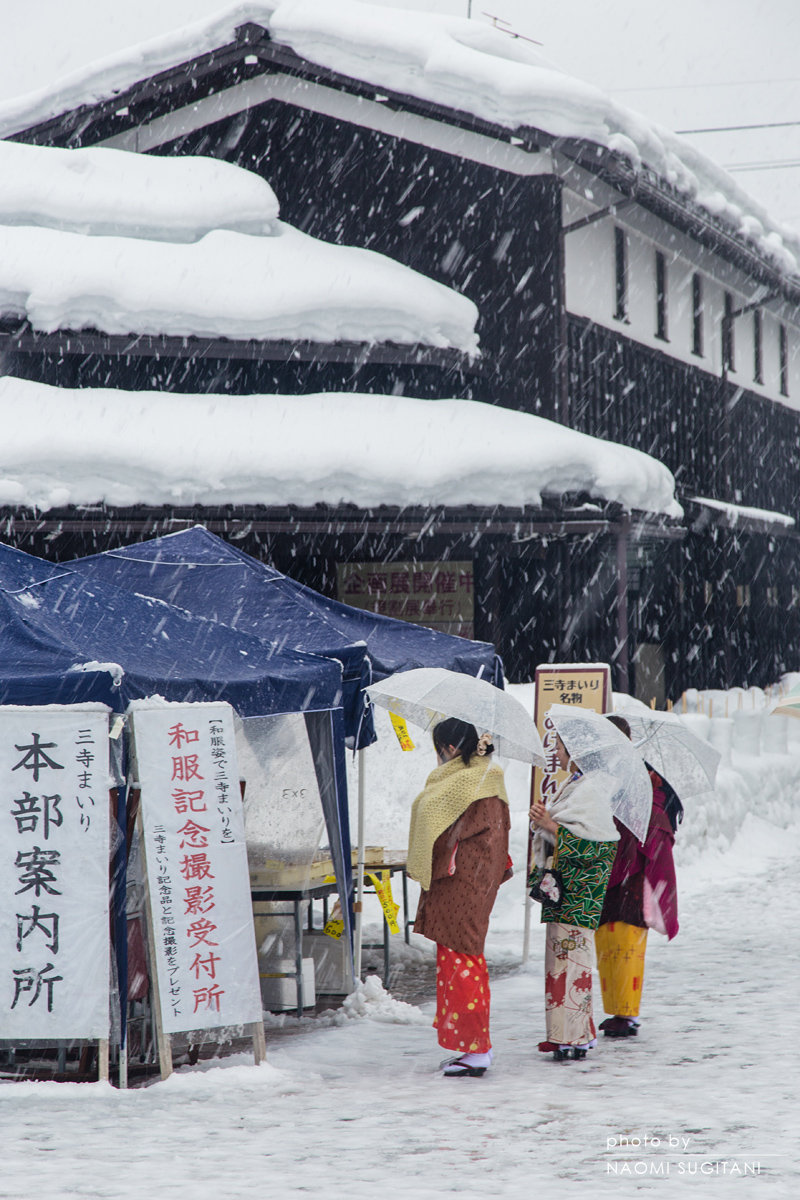 今年も三寺参りを見ることが出来ました。厳しい寒さと雪、雨の中、素敵な笑顔の着物の女性と運営された多くの方に感謝します。