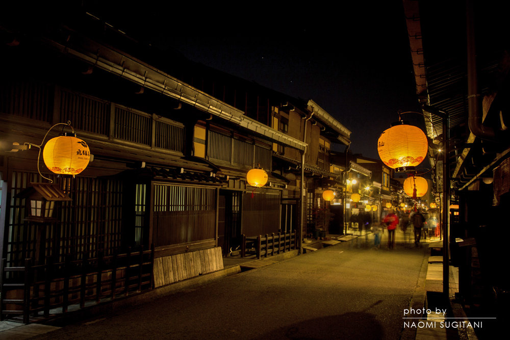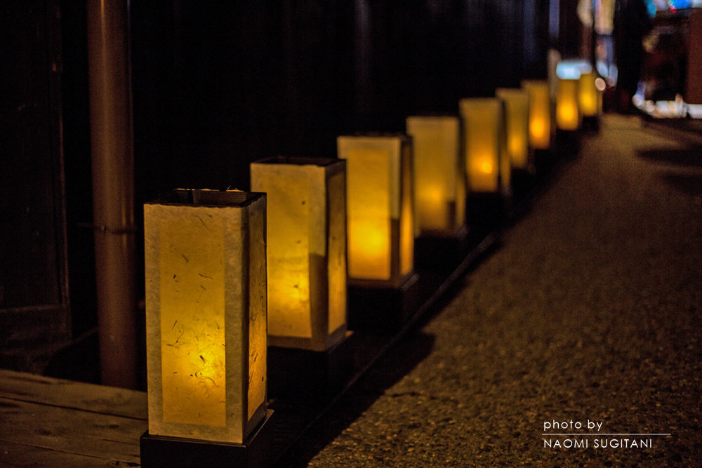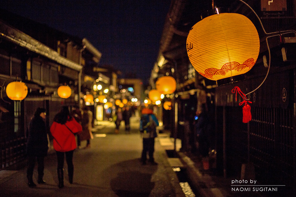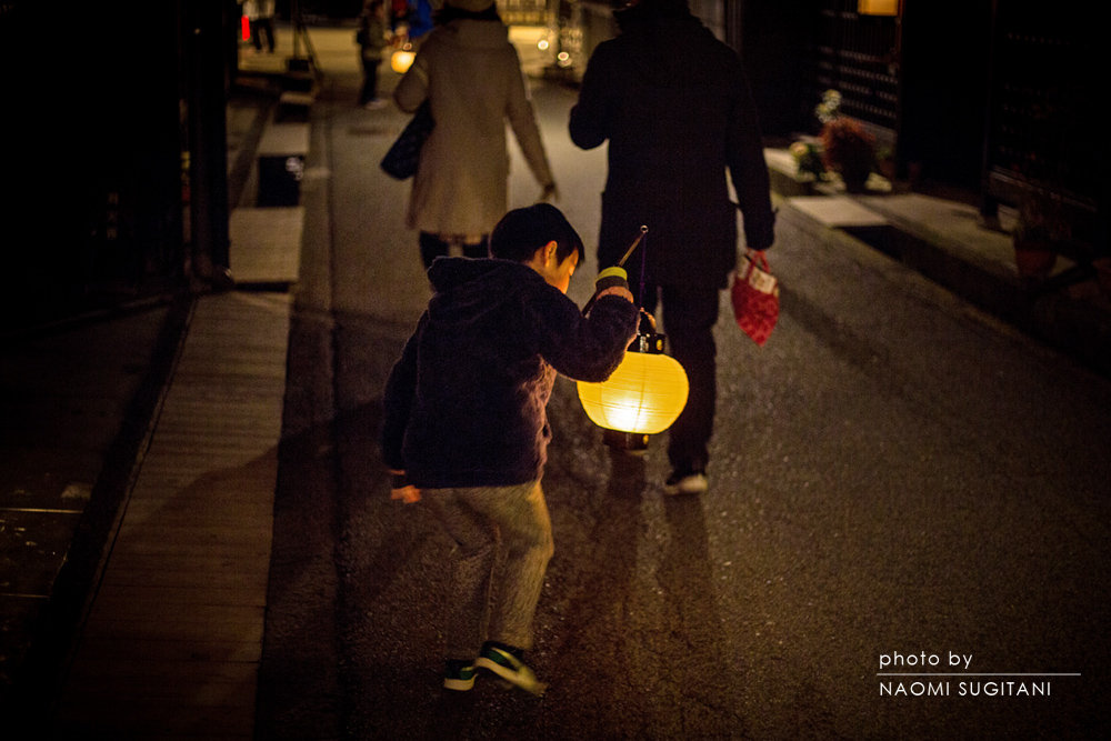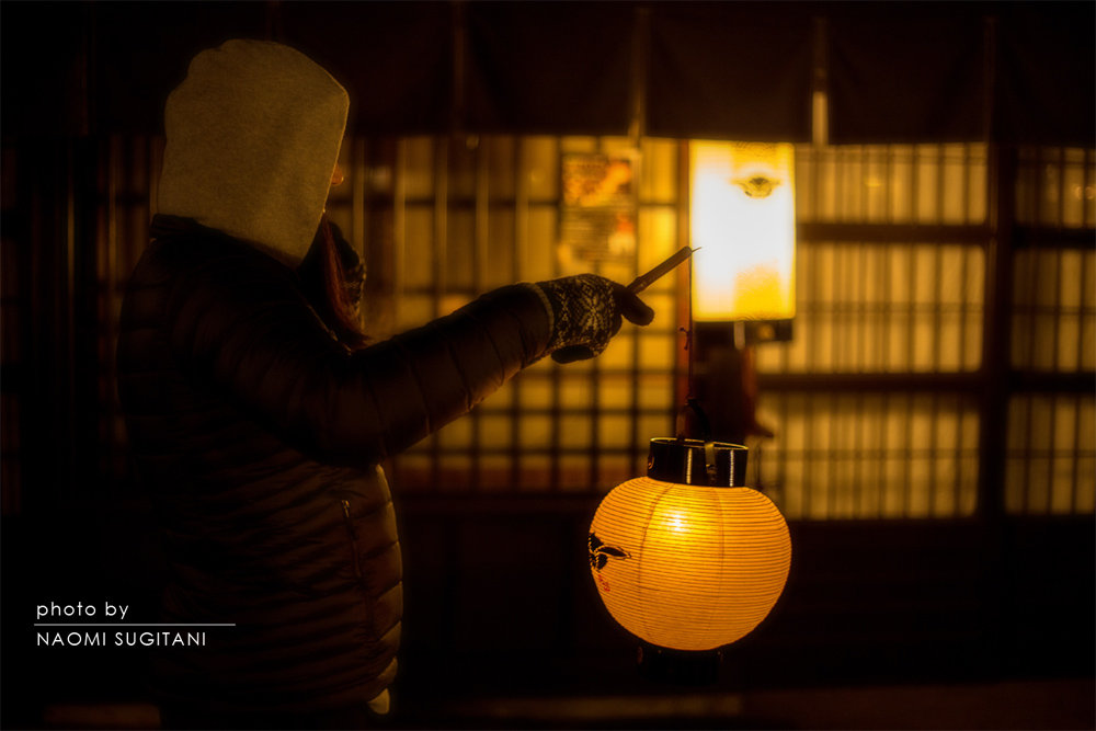 今年は、まるで雪のない冬。恒例の「古い街並み提灯ライトアップ」に観光客は 物足りなさそうに行き交っています。